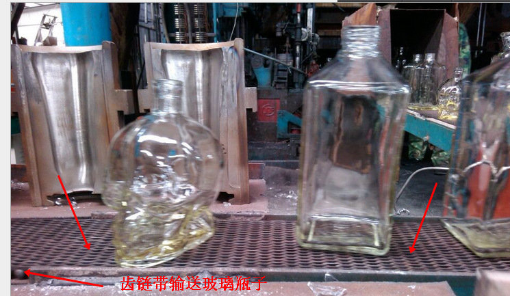配套與行列式制瓶機(jī)和輸瓶機(jī)上,制杯機(jī)的輸送線。