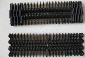 無聲鏈帶:一種玻璃機(jī)械輸瓶機(jī)配件,用在玻璃機(jī)械輸送機(jī)上,在行列式制瓶機(jī),輸瓶機(jī),輸送玻璃杯子的輸送線上用無聲齒型鏈,這種無聲齒形鏈條節(jié)距12.7毫米,內(nèi)導(dǎo)向或者外導(dǎo)向的,無聲齒形鏈條采用特殊熱處理工藝,這種淬火處理熱處理厚度0.2毫米,解決了熱處理硬度不過關(guān)的問題,硬度大了,斷片;熱處理硬度小了不耐磨的問題。
