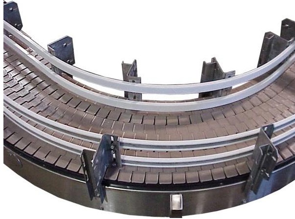 平頂鏈鏈板輸送機(jī) 能夠拐彎 升降的板式輸送帶  按客戶的要求,除了水平直輸外,還能滿足其他的要求,這種輸送機(jī)的特點(diǎn)就是耐磨耐腐,結(jié)構(gòu)精密,輸送平穩(wěn),輸送面平穩(wěn)不倒瓶,在兩邊加側(cè)擋板,按輸送瓶子的大小,側(cè)擋板可以調(diào)節(jié)距離。