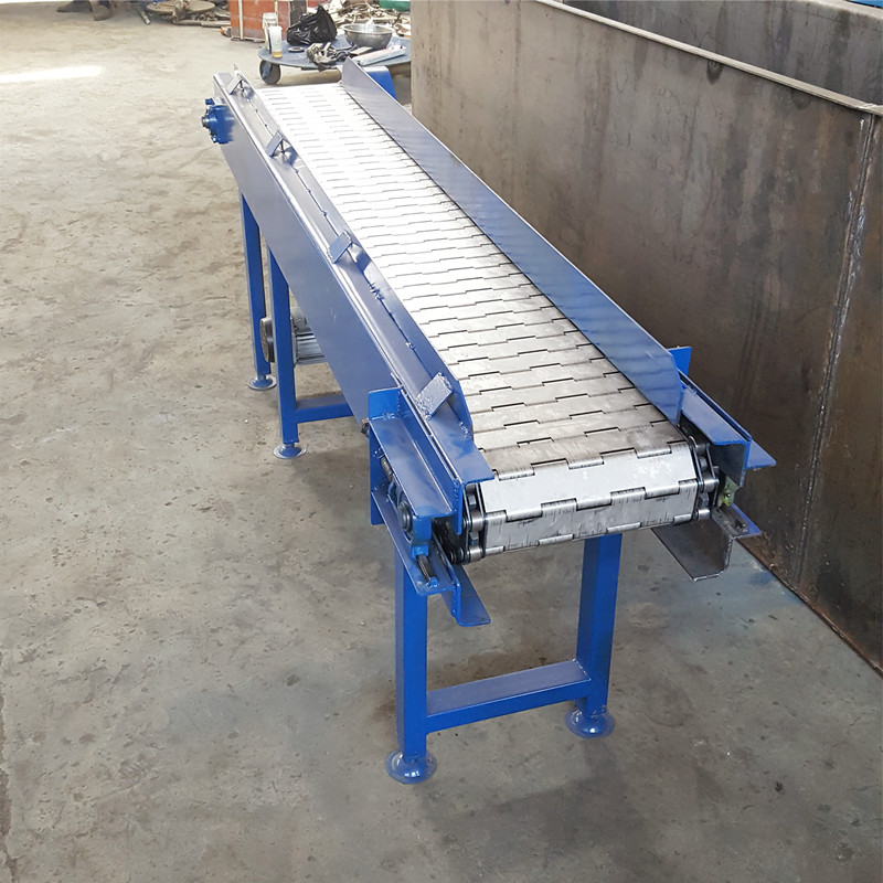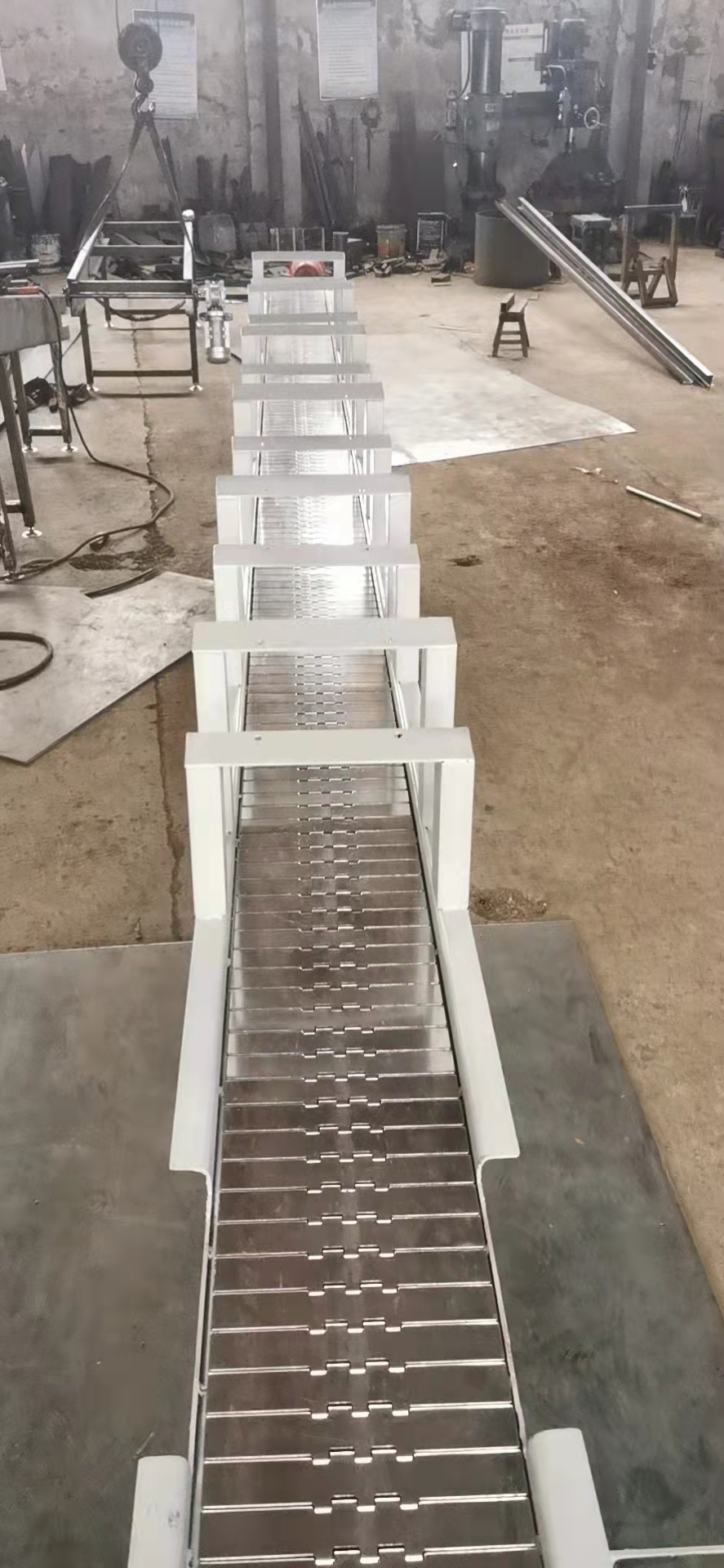 銷售的鏈板輸送機(jī)規(guī)格,長(zhǎng)度2.2米 寬度300毫米 高度一頭750毫米 一頭800毫米 。