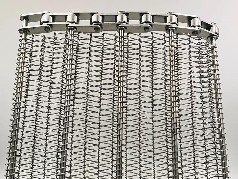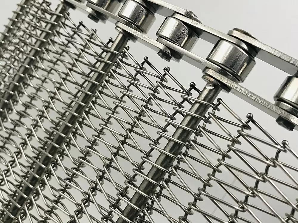 鏈條傳動(dòng), 運(yùn)行平穩(wěn),網(wǎng)面相對(duì)受力小 網(wǎng)面平整,支軸支撐,網(wǎng)帶能承受較高的載荷和抗拉強(qiáng)度 鏈條網(wǎng)支軸,齒輪運(yùn)行,無(wú)需摩擦,可進(jìn)行直線(xiàn),斜坡,重載 和長(zhǎng)距離輸送