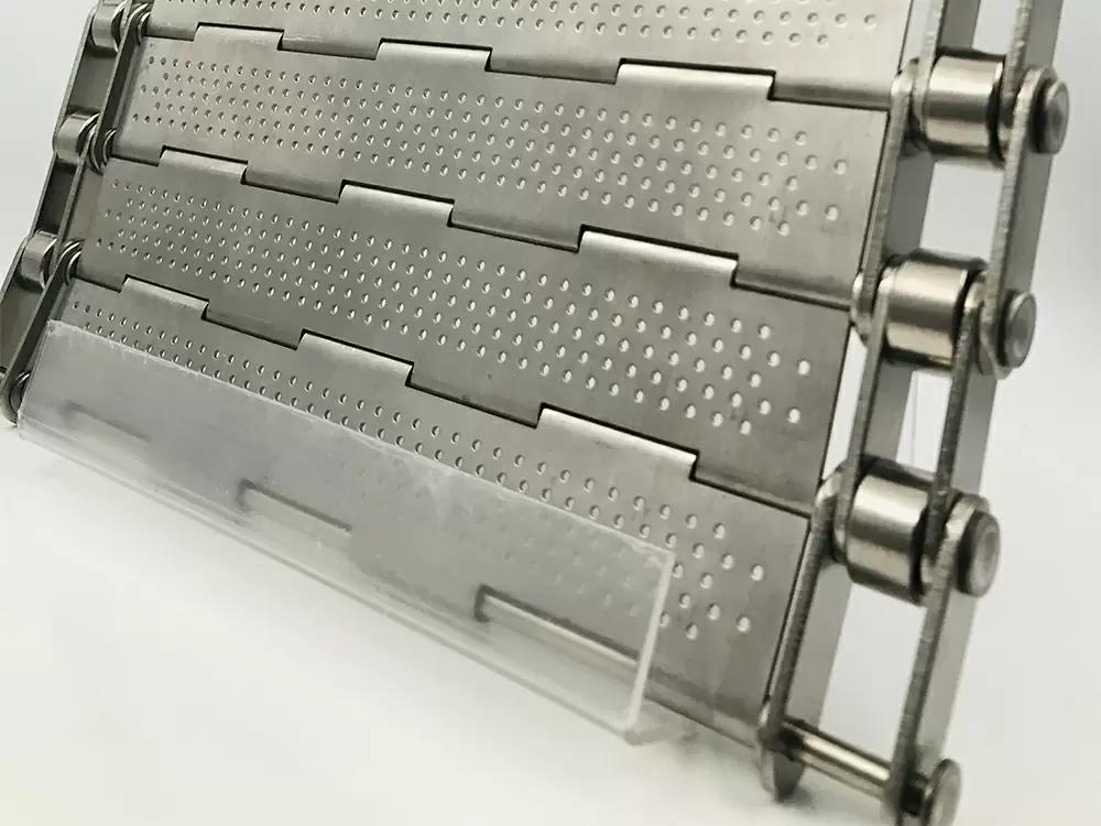 鏈板式網(wǎng)帶非常堅(jiān)固,由滾子鏈條驅(qū)動(dòng) ,采用金屬板材生產(chǎn),適合護(hù)送細(xì)小的高密度物質(zhì),輸送過(guò)程平穩(wěn),安裝更換方便 使 用壽命長(zhǎng).鏈板網(wǎng)采用支軸支撐,網(wǎng)帶表面可依據(jù)需求選擇沖孔或者平板適用。鏈條兩端可以用開(kāi)口銷或者墊圈來(lái)固定。機(jī)械配置選擇鏈條型號(hào)和支軸規(guī)格,鏈板網(wǎng)設(shè)計(jì)可以在網(wǎng)帶邊緣加側(cè)擋板和網(wǎng)面中間加裝橫擋板.