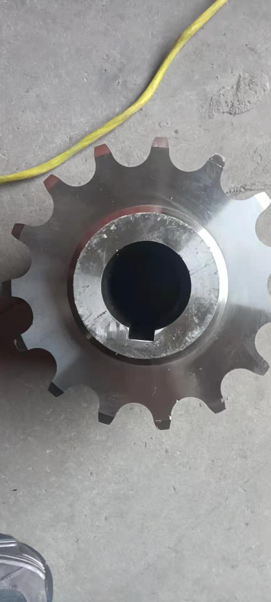 廠家直銷不銹鋼鏈輪的結(jié)構(gòu):鏈輪一種帶嵌齒式扣鏈齒的輪子,用以與節(jié)鏈環(huán)或纜索上節(jié)距準(zhǔn)確的塊體相嚙合。鏈輪被廣泛應(yīng)用于化工、紡織機(jī)械、食品加工、儀表儀器、石油等行業(yè)的機(jī)械傳動等。鏈輪結(jié)構(gòu)設(shè)計:1、鏈輪的齒形鏈輪齒形必須保證鏈節(jié)能平穩(wěn)自如地進(jìn)入和退出嚙合,盡量減少嚙合時的鏈節(jié)的沖擊和接觸應(yīng)力,而且要易于加工。它是由三段圓弧aa、ab、cd和一段直線bc構(gòu)成,簡稱三圓弧-直線齒形。齒形用標(biāo)準(zhǔn)刀具加工,在鏈輪工作圖上不必繪制端面齒形,只需在圖上注明"齒形按3RGB1244-85規(guī)定制造"即可,但應(yīng)繪制鏈輪的軸面齒形,其尺寸參閱有關(guān)設(shè)計手冊。2、鏈輪結(jié)構(gòu)小直徑鏈輪一般做成整體式,中等直徑鏈輪多做成輻板式,為便于搬運(yùn)、裝卡和減重,在輻板上開孔,大直徑鏈輪可做成組合式,此時齒圈與輪芯可用不同材料制造。例如C45,不銹鋼等材料。3、鏈輪材料鏈輪材料應(yīng)保證輪齒有足夠的強(qiáng)度和耐磨性,故鏈輪齒面一般都經(jīng)過熱處理,使之達(dá)到一定硬度。
