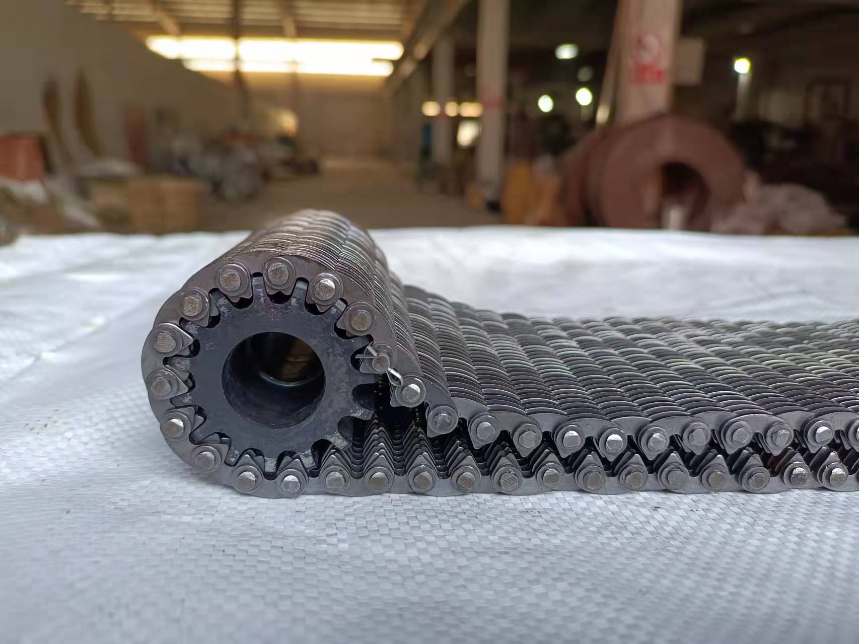 雙銷軸鉸鏈通常用兩個帶有凸面的銷軸。當(dāng)與鏈輪嚙合時鉸鏈齒形鏈條兩凸面相對滾動。典型雙銷軸鉸鏈條齒形鏈條。雙銷軸鉸鏈齒形鏈條通過消除滑動極大地減少了摩擦和磨損。雙銷軸鉸鏈條齒形鏈條實際上也消除了多邊形效應(yīng)影響。銷軸的彎曲表面起一種凸輪作用,節(jié)距在每個鏈節(jié)嚙合輪齒時會稍微增大后再減小,這種節(jié)距變化設(shè)計平衡了多邊效應(yīng)產(chǎn)生的速度變化
