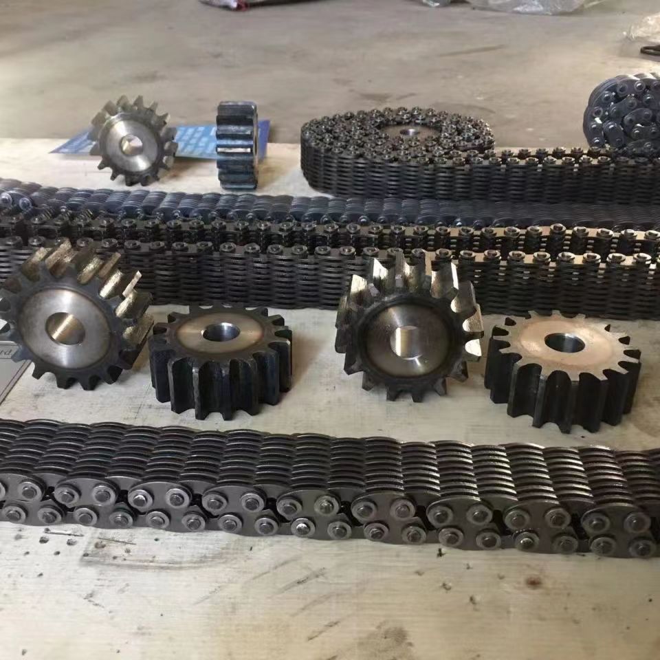 無聲鏈 齒形鏈輪 無聲鏈:也叫齒形鏈條,采用無聲齒形鏈輪帶動運轉傳動。寧津縣榮發(fā)齒輪廠定做各種無聲齒形鏈條,無聲齒形鏈輪。我們根據客戶自己的情況,客戶選型成功,我們根據客戶的數(shù)據非標定做各種齒形鏈條和無聲齒形鏈輪。齒形鏈條節(jié)距4.7625,6.35 9.525 12.7 15.875 19.05 25.4 31.75 38.1毫米的鏈條都能做,無聲齒形鏈輪根據客戶的齒數(shù)和外徑,內孔,鍵槽定做。無聲齒形鏈條的獨特優(yōu)點:高速,無噪音,高承載傳動能力,轉矩大等等優(yōu)點,逐漸取代精密滾子鏈條和同步帶。