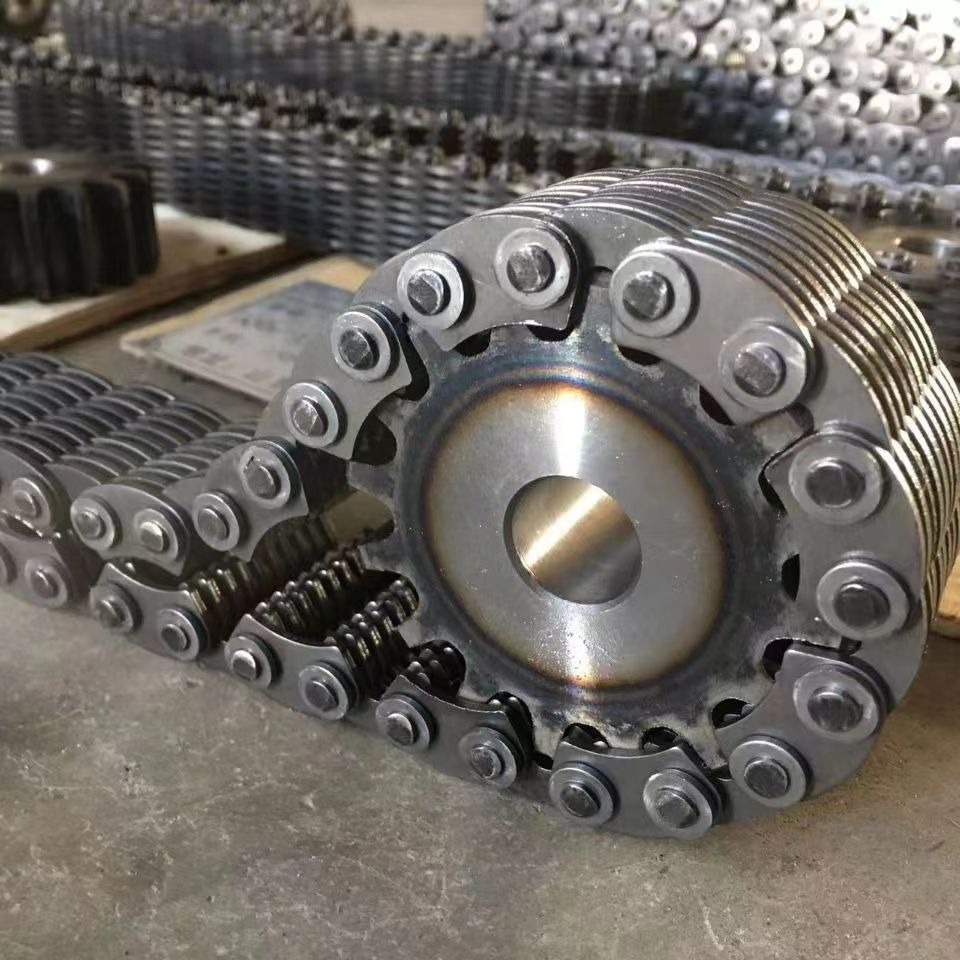 齒形鏈又稱無聲鏈(Silent Chain),屬于傳動鏈的一種形式。我國的國家標準為:GB/T10855-2003《齒形鏈和鏈輪》。齒形鏈是由一系列的齒鏈板和導板交替裝配且銷軸或組合的鉸接元件連接組成,相鄰節(jié)距間為鉸連節(jié)。根據導向型式可分為:外導式齒形鏈、內導式齒形鏈和雙內導齒形鏈.齒形鏈又稱無聲鏈,屬于傳動鏈的一種形式。齒形鏈是一種應用廣泛的重要機械基礎件,主要用在高速、重載、低噪音、大中心距的工況下,其傳動性能優(yōu)于齒形帶傳動、齒輪傳動以及磙子鏈傳動,以成為眾多行業(yè)對傳動形式之一,以嚙合形式分可分為內嚙合齒形鏈、外嚙合齒形鏈和內外復合嚙合齒形鏈,其中內外復合嚙合齒形鏈的噪音小,應用也廣泛。主要特點:1.噪音小 齒形鏈是通過工作鏈板與鏈輪齒的漸開線齒形進行嚙合傳遞動力,與滾子鏈和套筒鏈相比其多邊形效應明顯降低,沖擊小、運動平穩(wěn)、嚙合噪音較小。2.可靠性較高 齒形鏈的鏈節(jié)是多片式結構,當其中個別鏈片在工作中遭到破壞時并不影響整根鏈條的工作,使人們能夠及時發(fā)現(xiàn)并更換,如需增加承載能力只需在寬度方向較小尺寸(增加鏈片排數(shù))。3.運動精度高 齒形鏈各鏈節(jié)磨損伸長均勻,可保持較高的運動精度。齒形鏈條主要應用范圍:齒形鏈主要應用在紡織機械和無心磨床,傳送帶機械設備。齒形鏈條的種類:CL06,CL08,CL10,CL12,CL16,CL20。根據導向分:內導的齒形鏈條和外導的齒形鏈條,內外復合的齒形鏈條