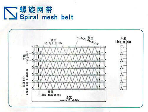 螺旋網(wǎng)帶的規(guī)格型號節(jié)距(毫米):19.05,25.4,27.4,30,30.5,38.1
