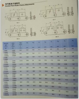 帶直立板鏈條 節(jié)距50.8毫米的雙節(jié)距單孔輸送鏈條 給聊城張經(jīng)理制造的C2082的鏈條 節(jié)距50.8毫米,直立板上沖孔直徑是11.0毫米,直立板的寬度是38.1毫米,銷軸的中心到彎板上面的距離是37.4毫米,銷軸的中心到直板沖孔的距離是22.2毫米,價格是45元/米 共200米。工期3天。
