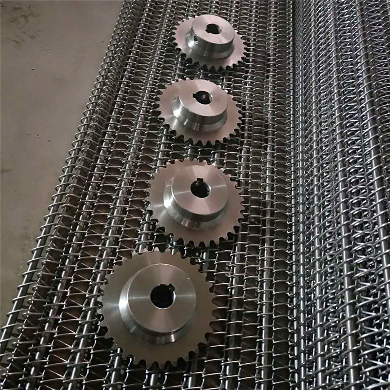 鏈條式網(wǎng)帶由一般的輸送網(wǎng)帶兩側(cè)加裝鏈條及橫向支撐桿而成,鏈輪傳動,網(wǎng)帶寬帶固定不變形。調(diào)整網(wǎng)帶不