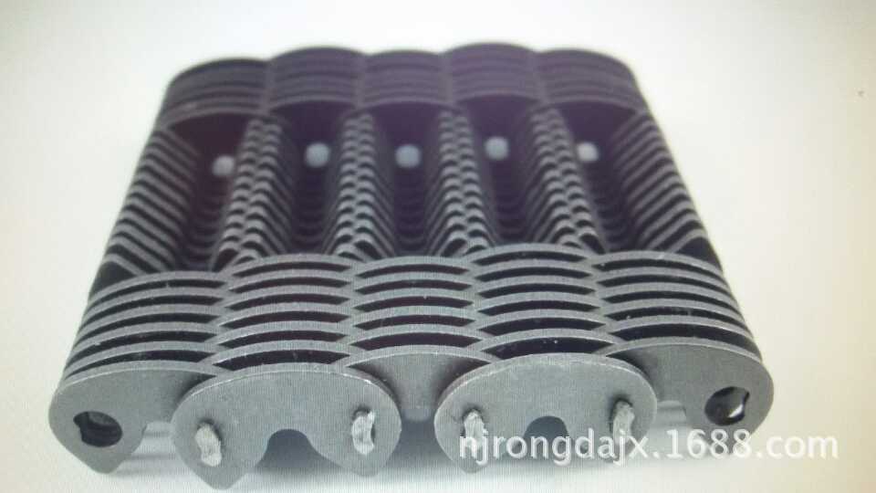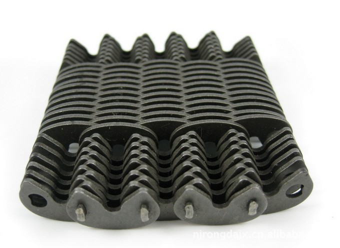 HV416-96l哈瓦鏈條:一種雙軸的齒形鏈條,軸是兩根用,在一個(gè)鏈條孔里面有兩個(gè)瓦片銷軸。下圖是HV416齒形鏈條。有5個(gè)導(dǎo)向片,60個(gè)帶尖的齒形鏈片,長(zhǎng)度106.5毫米,2500元一條。