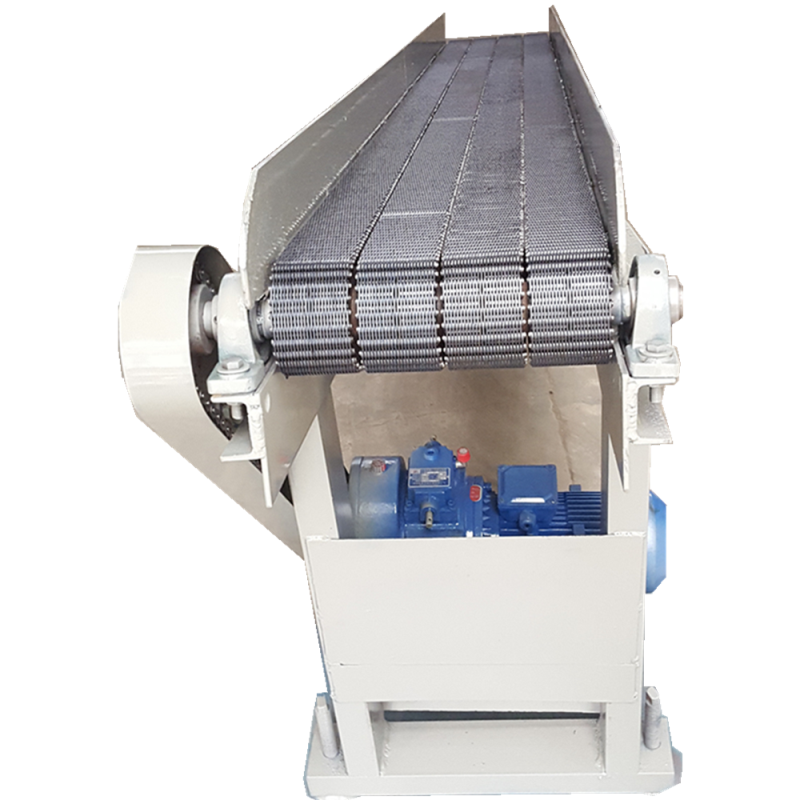 (4)合頁鏈板輸送機(jī),采用合頁鏈板輸送帶,能解決尖的小的鍛造件的輸送機(jī)。如果加大輸送帶規(guī)格做成大規(guī)格輸送帶,也能輸送大鍛造件。
