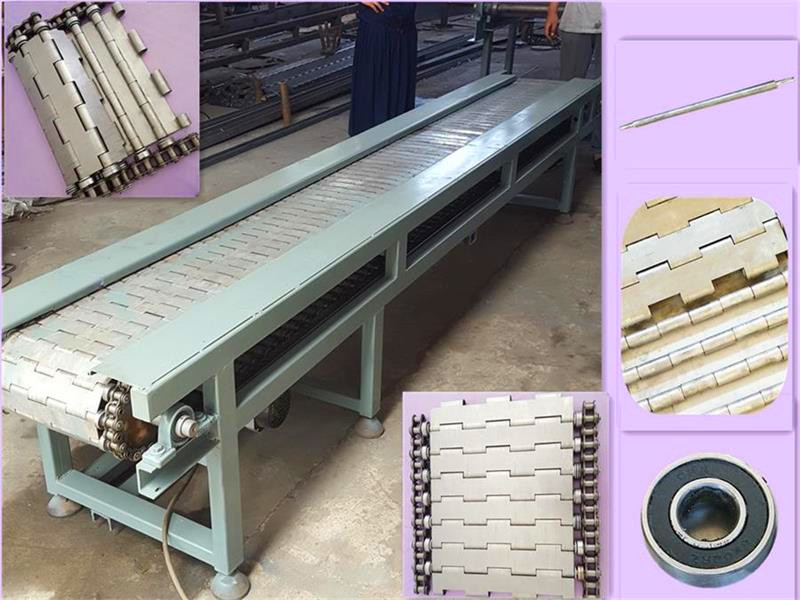 (1)精密滾子鏈條輸送機(jī),采用多排的精密滾子鏈條,抗砸,抗沖擊力,快速,傳送速度快,適合大件,高速的熱鍛造件傳送。鏈條的下面是加厚加重的底板,使用起來放心安心。