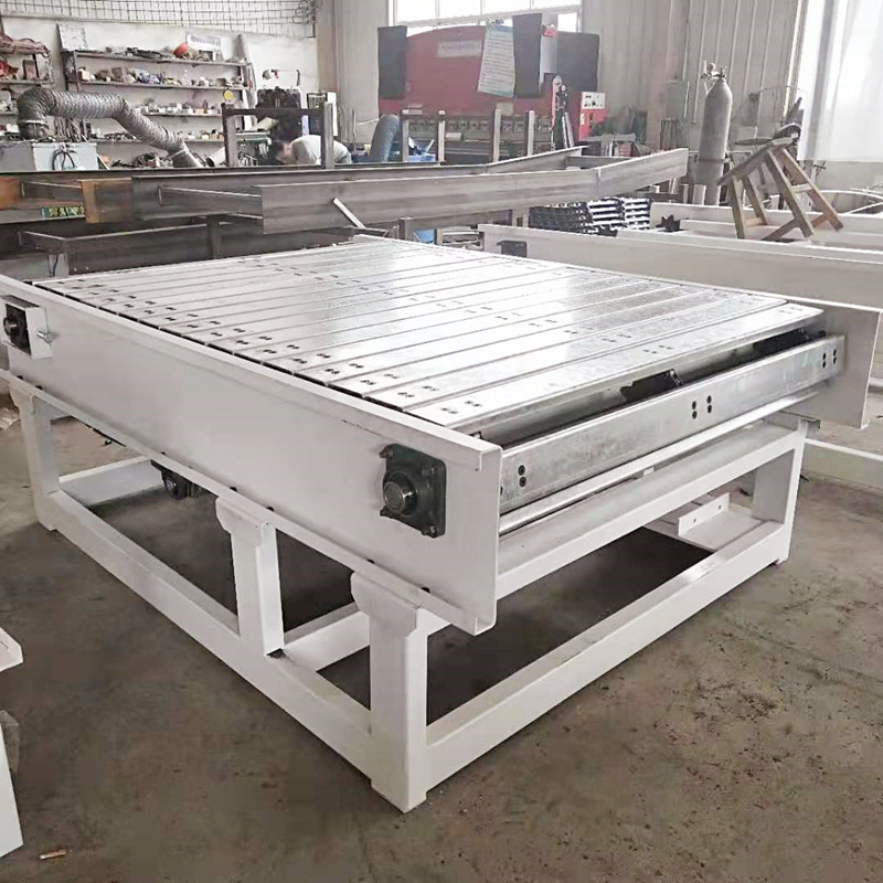 (5)槽鋼扣板輸送機(jī)。采用8個(gè)國標(biāo)槽鋼制作。輸送大型笨重的鍛造件,平穩(wěn)。使用壽命長??乖遥箾_擊力。槽鋼扣板輸送機(jī)多數(shù)用來輸送大鍛造件。