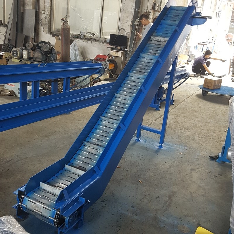 1,如果輸送機是提升機,是傾斜爬坡輸送機,輸送的時候帶角度提升輸送,盡量在輸送帶上加上橫擋板,在輸送帶上加上防滑隔板。