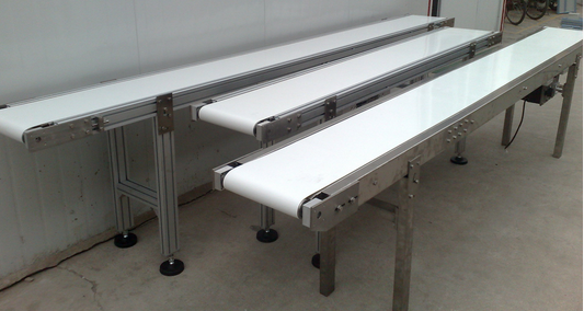 食品行業(yè)用皮帶輸送機機架和可調支腳都是不銹鋼材料組合而成。符合食品行業(yè)的使用特性,不銹鋼重量輕既輕巧,又美觀。機架與可調支腳由連接板連接。幾個可調支腳之間通過下拉管,用吊緊螺絲進行連接。