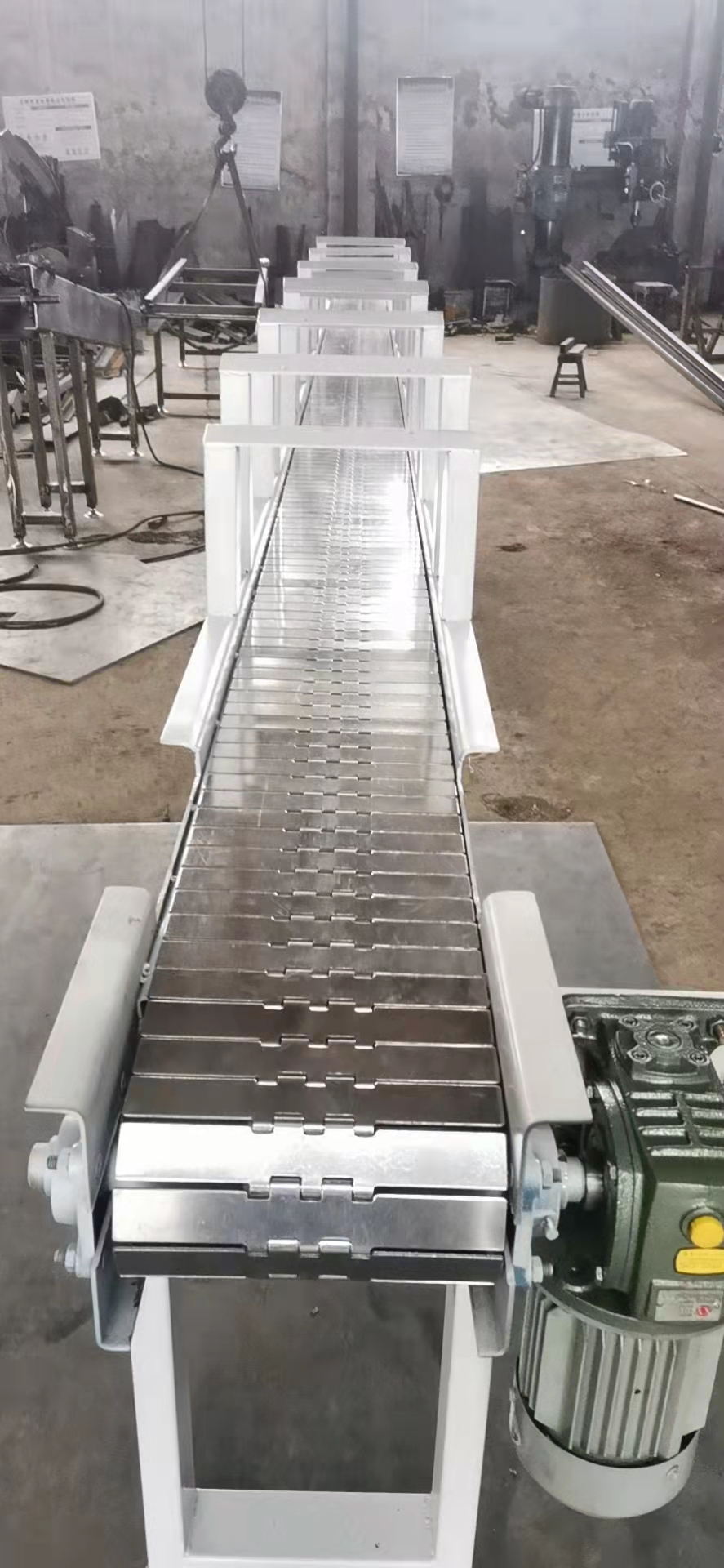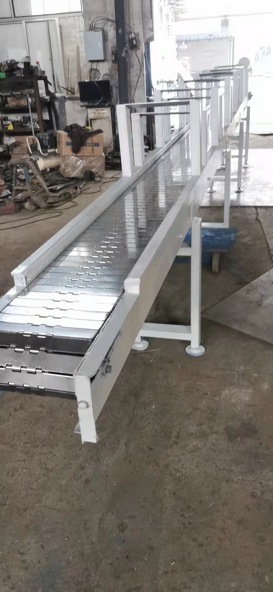 銷售的鏈板輸送機(jī)規(guī)格,長(zhǎng)度2.2米 寬度300毫米 高度一頭750毫米 一頭800毫米 。