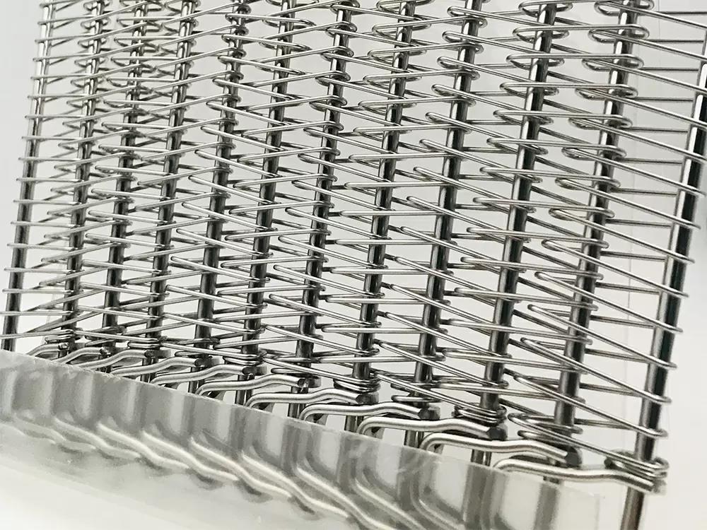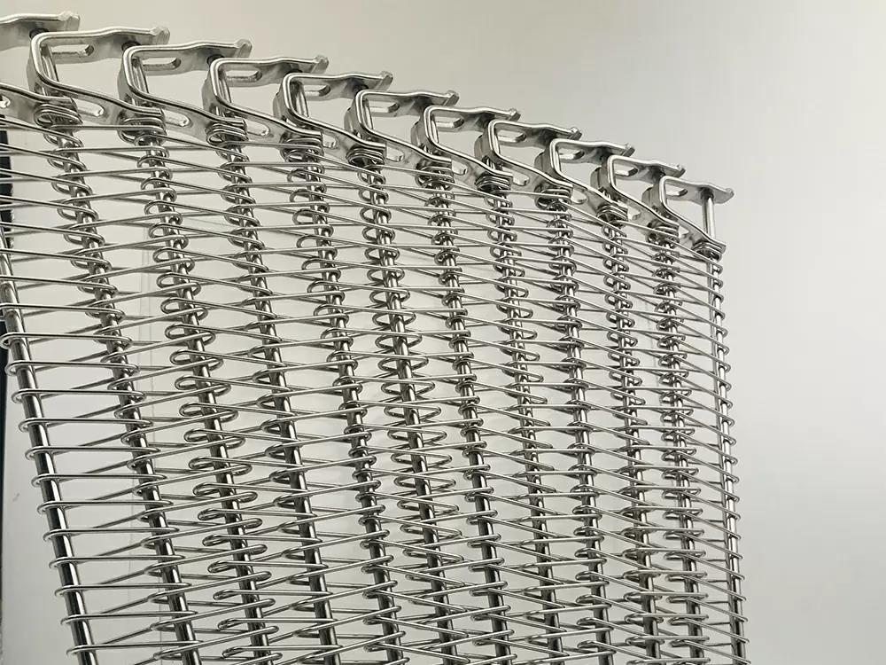 螺旋網(wǎng)采用高抗拉不銹鋼絲經(jīng)進(jìn)口數(shù)控網(wǎng)帶成型機(jī)加工生產(chǎn),網(wǎng)面強(qiáng)硬耐用,不易變形。網(wǎng)面平整,焊接牢固,轉(zhuǎn)彎性能好,可以實(shí)現(xiàn) 180度和360度的轉(zhuǎn)彎??梢猿休d較重的壓力和拉力,維修和拆卸極為方便,可以根據(jù)應(yīng)用設(shè)計(jì)網(wǎng)面有絲網(wǎng),網(wǎng)面無(wú)絲網(wǎng),網(wǎng)帶兩側(cè)加裝擋板或者網(wǎng)帶中間加裝鏈條。