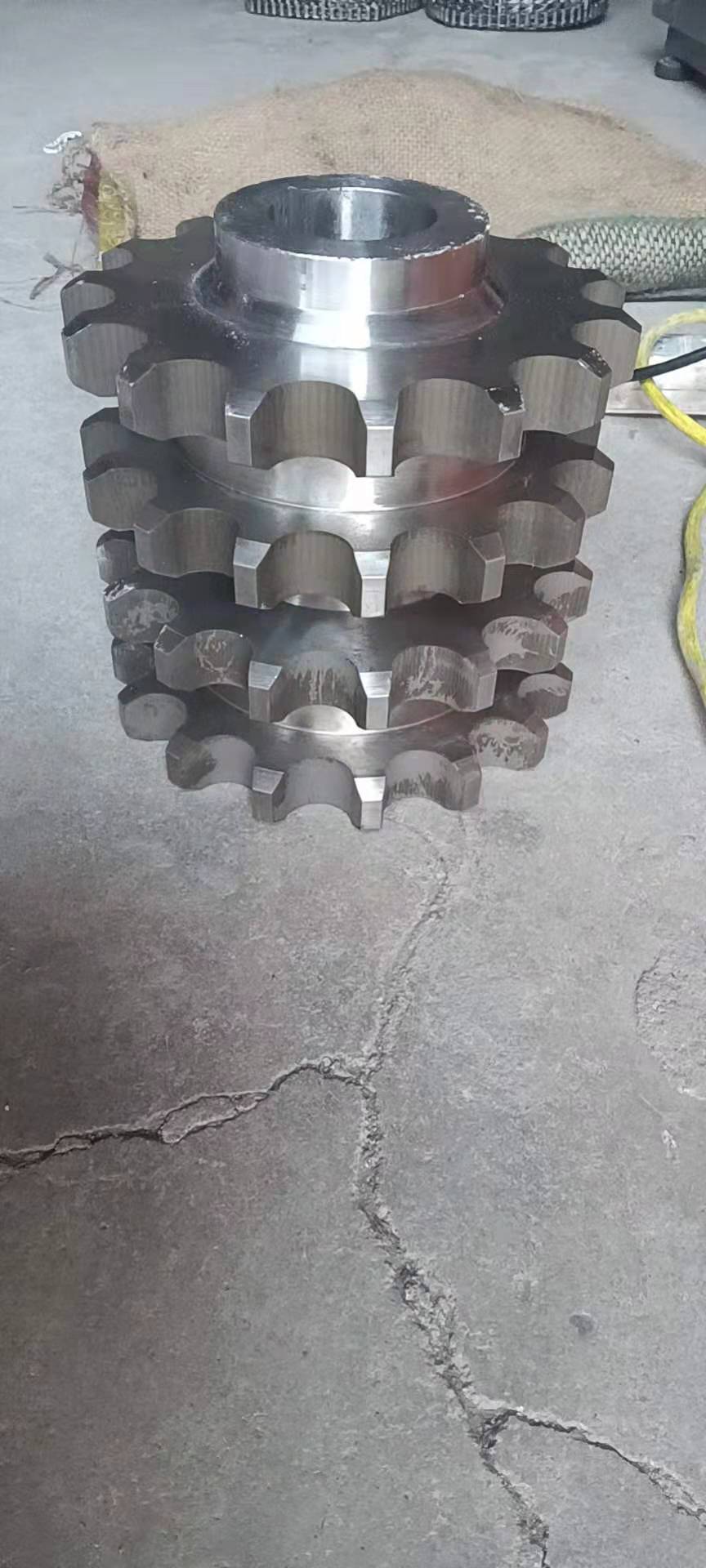 廠家直銷不銹鋼鏈輪的結(jié)構(gòu):鏈輪一種帶嵌齒式扣鏈齒的輪子,用以與節(jié)鏈環(huán)或纜索上節(jié)距準(zhǔn)確的塊體相嚙合。鏈輪被廣泛應(yīng)用于化工、紡織機(jī)械、食品加工、儀表儀器、石油等行業(yè)的機(jī)械傳動等。鏈輪結(jié)構(gòu)設(shè)計:1、鏈輪的齒形鏈輪齒形必須保證鏈節(jié)能平穩(wěn)自如地進(jìn)入和退出嚙合,盡量減少嚙合時的鏈節(jié)的沖擊和接觸應(yīng)力,而且要易于加工。它是由三段圓弧aa、ab、cd和一段直線bc構(gòu)成,簡稱三圓弧-直線齒形。齒形用標(biāo)準(zhǔn)刀具加工,在鏈輪工作圖上不必繪制端面齒形,只需在圖上注明"齒形按3RGB1244-85規(guī)定制造"即可,但應(yīng)繪制鏈輪的軸面齒形,其尺寸參閱有關(guān)設(shè)計手冊。2、鏈輪結(jié)構(gòu)小直徑鏈輪一般做成整體式,中等直徑鏈輪多做成輻板式,為便于搬運(yùn)、裝卡和減重,在輻板上開孔,大直徑鏈輪可做成組合式,此時齒圈與輪芯可用不同材料制造。例如C45,不銹鋼等材料。3、鏈輪材料鏈輪材料應(yīng)保證輪齒有足夠的強(qiáng)度和耐磨性,故鏈輪齒面一般都經(jīng)過熱處理,使之達(dá)到一定硬度。
