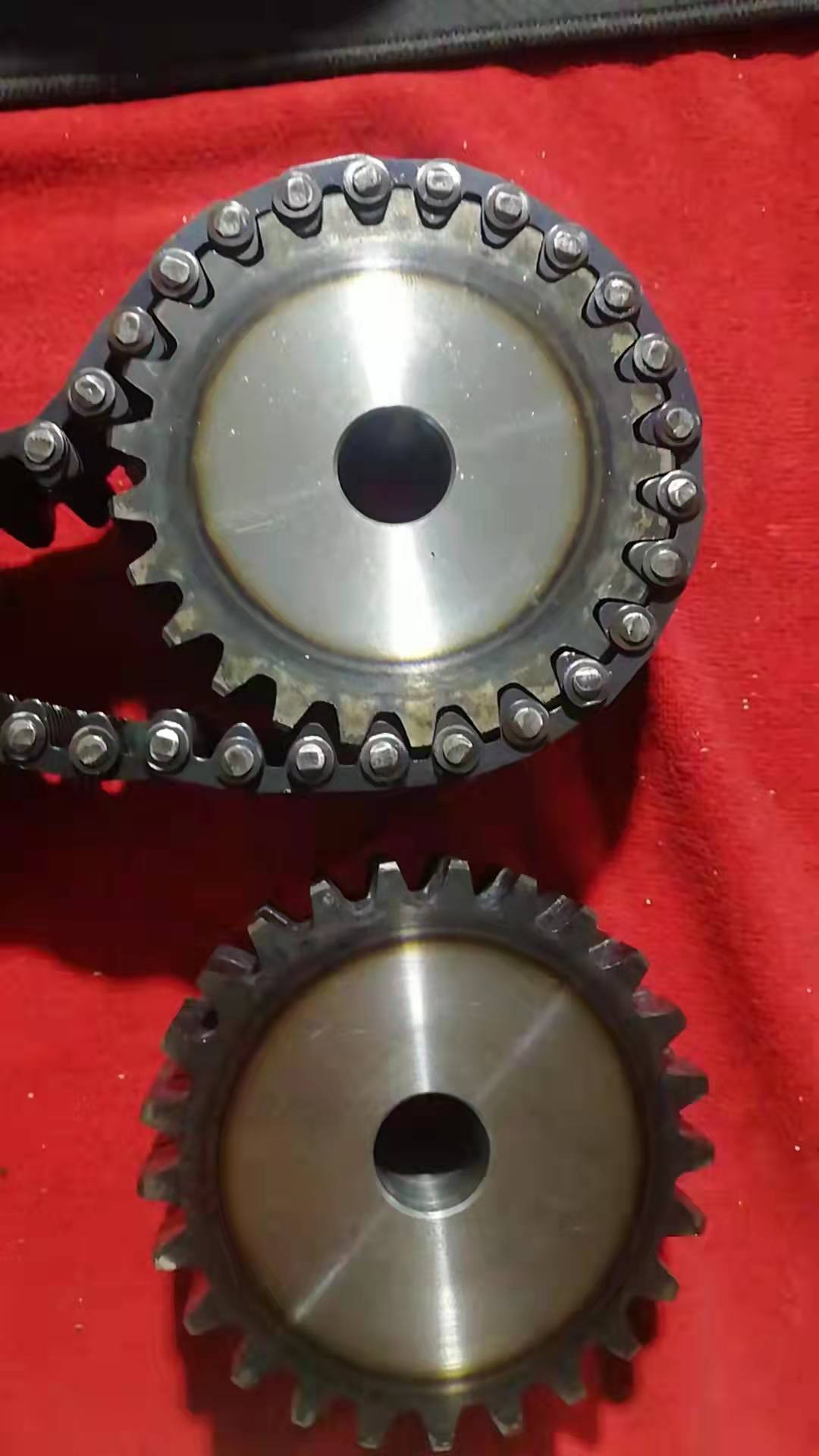 齒形鏈又稱無(wú)聲鏈(Silent Chain),屬于傳動(dòng)鏈的一種形式。我國(guó)的國(guó)家標(biāo)準(zhǔn)為:GB/T10855-2003《齒形鏈和鏈輪》。齒形鏈?zhǔn)怯梢幌盗械凝X鏈板和導(dǎo)板交替裝配且銷軸或組合的鉸接元件連接組成,相鄰節(jié)距間為鉸連節(jié)。根據(jù)導(dǎo)向型式可分為:外導(dǎo)式齒形鏈、內(nèi)導(dǎo)式齒形鏈和雙內(nèi)導(dǎo)齒形鏈.齒形鏈又稱無(wú)聲鏈,屬于傳動(dòng)鏈的一種形式。齒形鏈?zhǔn)且环N應(yīng)用廣泛的重要機(jī)械基礎(chǔ)件,主要用在高速、重載、低噪音、大中心距的工況下,其傳動(dòng)性能優(yōu)于齒形帶傳動(dòng)、齒輪傳動(dòng)以及磙子鏈傳動(dòng),以成為眾多行業(yè)首選對(duì)傳動(dòng)形式之一,以嚙合形式分可分為內(nèi)嚙合齒形鏈、外嚙合齒形鏈和內(nèi)外復(fù)合嚙合齒形鏈,其中內(nèi)外復(fù)合嚙合齒形鏈的噪音最小,應(yīng)用也最廣泛。主要特點(diǎn):1.噪音小 齒形鏈?zhǔn)峭ㄟ^(guò)工作鏈板與鏈輪齒的漸開(kāi)線齒形進(jìn)行嚙合傳遞動(dòng)力,與滾子鏈和套筒鏈相比其多邊形效應(yīng)明顯降低,沖擊小、運(yùn)動(dòng)平穩(wěn)、嚙合噪音較小。2.可靠性較高 齒形鏈的鏈節(jié)是多片式結(jié)構(gòu),當(dāng)其中個(gè)別鏈片在工作中遭到破壞時(shí)并不影響整根鏈條的工作,使人們能夠及時(shí)發(fā)現(xiàn)并更換,如需增加承載能力只需在寬度方向較小尺寸(增加鏈片排數(shù))。3.運(yùn)動(dòng)精度高 齒形鏈各鏈節(jié)磨損伸長(zhǎng)均勻,可保持較高的運(yùn)動(dòng)精度。齒形鏈條主要應(yīng)用范圍:齒形鏈主要應(yīng)用在紡織機(jī)械和無(wú)心磨床,傳送帶機(jī)械設(shè)備。齒形鏈條的種類:CL06,CL08,CL10,CL12,CL16,CL20。根據(jù)導(dǎo)向分:內(nèi)導(dǎo)的齒形鏈條和外導(dǎo)的齒形鏈條,內(nèi)外復(fù)合的齒形鏈條