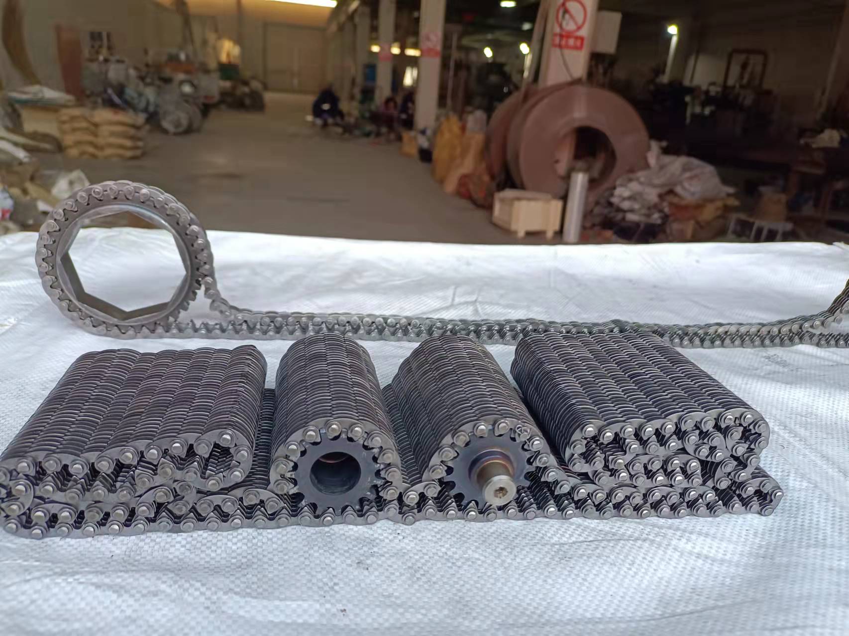 3)齒形鏈條傳動(dòng)比滾子鏈條傳動(dòng)噪音更低,更平穩(wěn),在有些情況下比齒輪傳動(dòng)噪音還低。