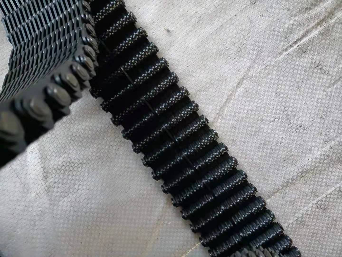 輸送機(jī)齒形鏈條經(jīng)常是使用平背鏈片,以此形成一個平滑的輸送表面,鏈條有抗污染的鉸鏈設(shè)計(jì),輸送機(jī)齒形鏈條頻繁應(yīng)用在輸送熱玻璃器皿和其他需要輸送機(jī)下方送風(fēng)以及要求傳送格外平穩(wěn)的工況。