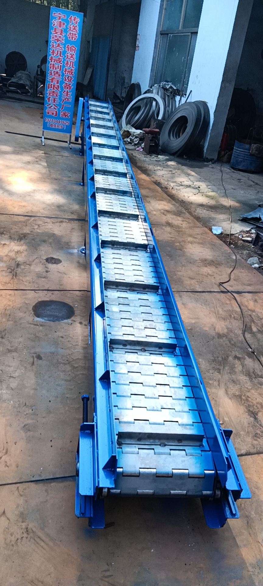鏈板式輸送機(jī),利用固接在牽引鏈上的一系列鏈板在水平或傾斜方向輸送物料的輸送機(jī),以單片鋼板鉸接成環(huán)帶作為運(yùn)輸機(jī)的牽引和承載構(gòu)件承載面具有橫向隔片置于槽箱中驅(qū)動(dòng)環(huán)帶借隔片將煤刮運(yùn)輸出。它由驅(qū)動(dòng)機(jī)構(gòu)、張緊裝置、牽引鏈、板條、驅(qū)動(dòng)及改向鏈輪、機(jī)架等部分組成。在冶金、煤炭、化工、電力、機(jī)械制造及國民經(jīng)濟(jì)的其他工業(yè)部門中均得到了廣泛的應(yīng)用。