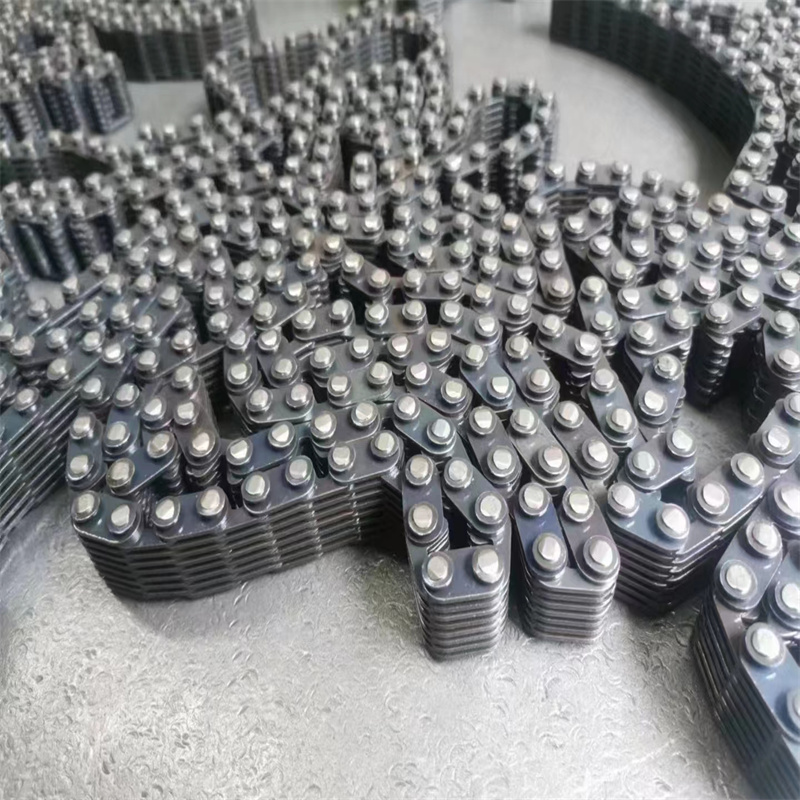 無聲鏈 齒形鏈輪 無聲鏈:也叫齒形鏈條,采用無聲齒形鏈輪帶動運轉傳動。寧津縣榮達機械制造有限責任公司定做各種無聲齒形鏈條,無聲齒形鏈輪。我們根據(jù)客戶自己的情況,客戶選型成功,我們根據(jù)客戶的數(shù)據(jù)非標定做各種齒形鏈條和無聲齒形鏈輪。齒形鏈條節(jié)距4.7625,6.35 9.525 12.7 15.875 19.05 25.4 31.75 38.1毫米的鏈條都能做,無聲齒形鏈輪根據(jù)客戶的齒數(shù)和外徑,內(nèi)孔,鍵槽定做。無聲齒形鏈條的獨特優(yōu)點:高速,無噪音,高承載傳動能力,轉矩大等等優(yōu)點,逐漸取代精密滾子鏈條和同步帶。