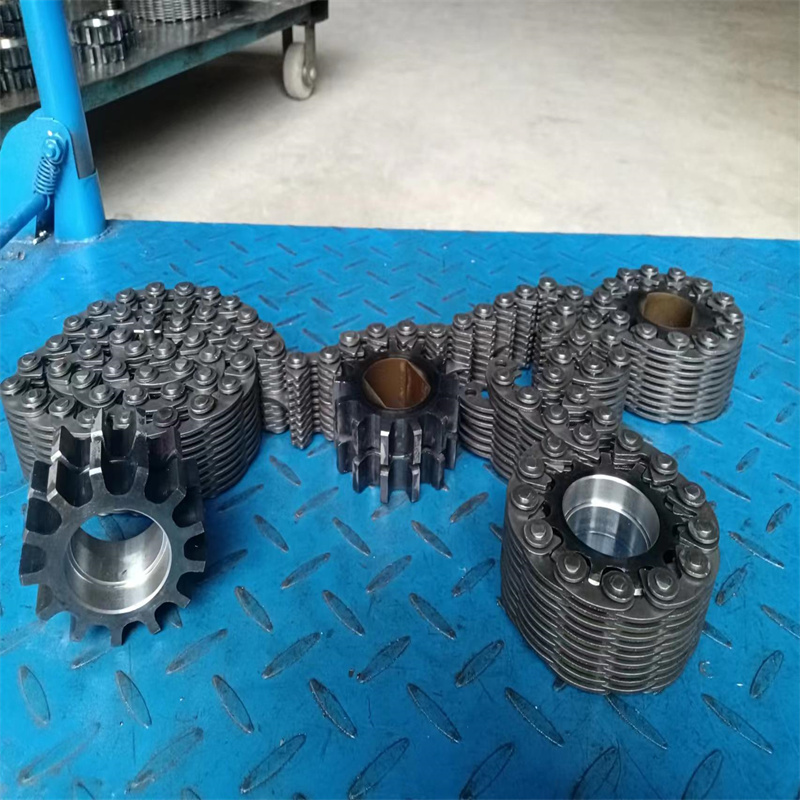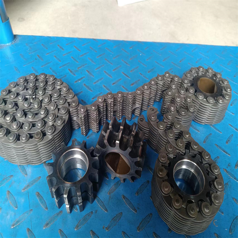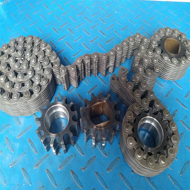 無聲鏈 齒形鏈輪 無聲鏈:也叫齒形鏈條,采用無聲齒形鏈輪帶動運轉傳動。寧津縣榮發(fā)齒輪廠定做各種無聲齒形鏈條,無聲齒形鏈輪。我們根據客戶自己的情況,客戶選型成功,我們根據客戶的數據非標定做各種齒形鏈條和無聲齒形鏈輪。齒形鏈條節(jié)距4.7625,6.35 9.525 12.7 15.875 19.05 25.4 31.75 38.1毫米的鏈條都能做,無聲齒形鏈輪根據客戶的齒數和外徑,內孔,鍵槽定做。無聲齒形鏈條的獨特優(yōu)點:高速,無噪音,高承載傳動能力,轉矩大等等優(yōu)點,逐漸取代精密滾子鏈條和同步帶。